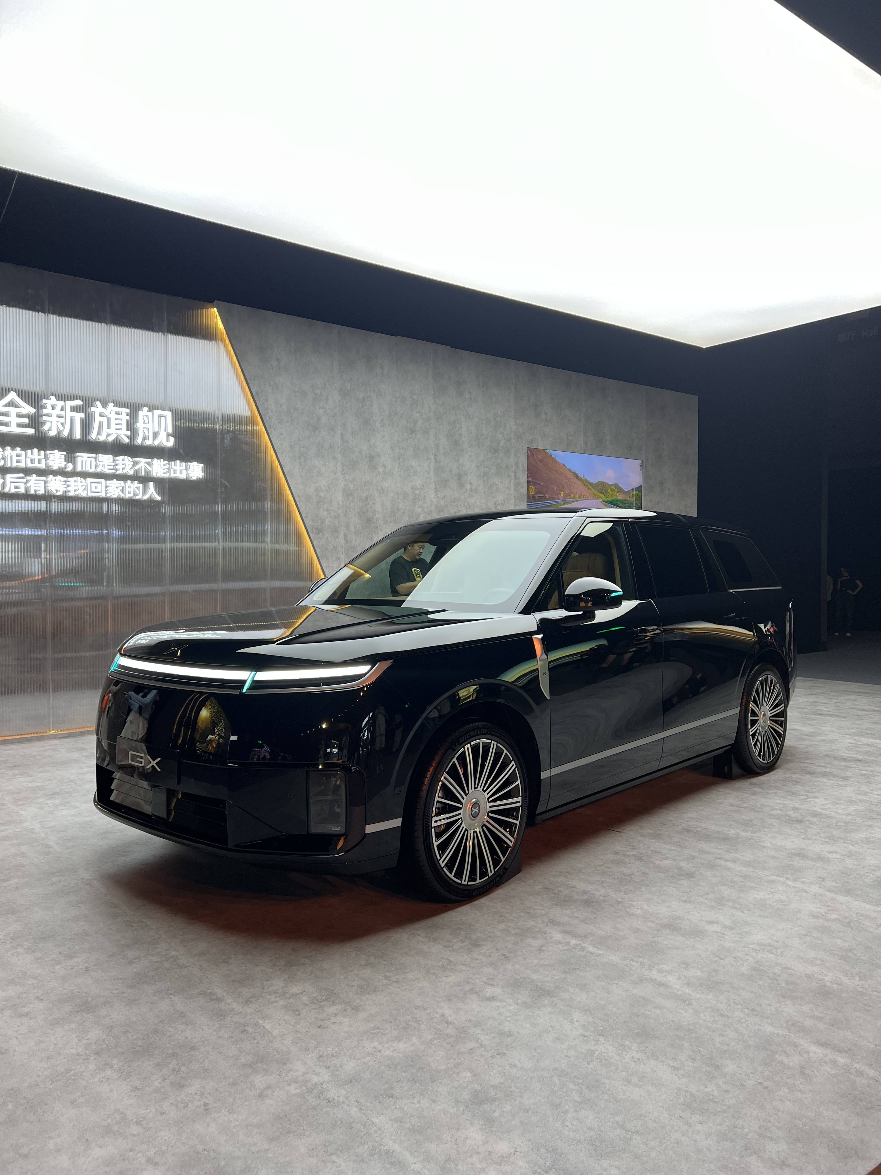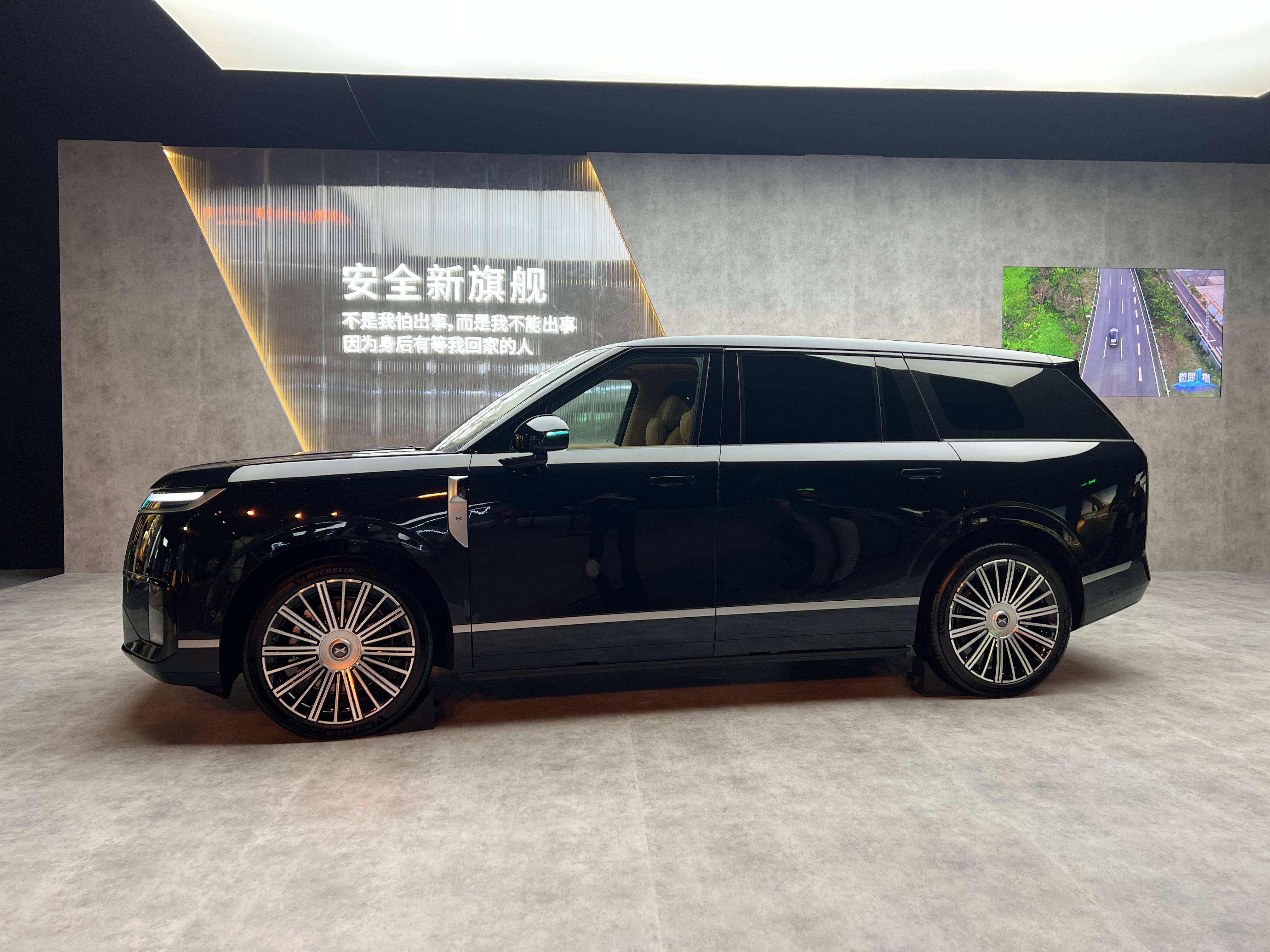 车身尺寸长宽高分别为5265/1999/1800mm,轴距3115mm,相比极氪9X、问界M9、等更大一些。庞大饱满的身躯配合悬浮式车顶,以及前翼子板处的镀铬饰件,不免给人一种路虎揽胜的既视感。而22英寸悬浮轮毂+超宽鸳鸯胎、智能电动车门、电动踏板+迎宾灯的加持,也进一步提升了豪华气息,并提供极地黑、珠峰白、峡峰灰、丹霞红、云漠金(哑光)共五种配色可选。