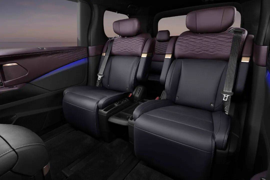 进入车内,尽管作为量产设计,Elgrand并不像雷克萨斯LS那样激进,但也尽可能为二排乘客提供了足够舒适的体验,甚至似乎可以看到很多源自中国MPV的设计理念,比如零重力座椅、双14.3英寸显示屏等等。此外车内还使用了TailorFit真皮、木纹饰板以及Kumiko风格图案装饰。