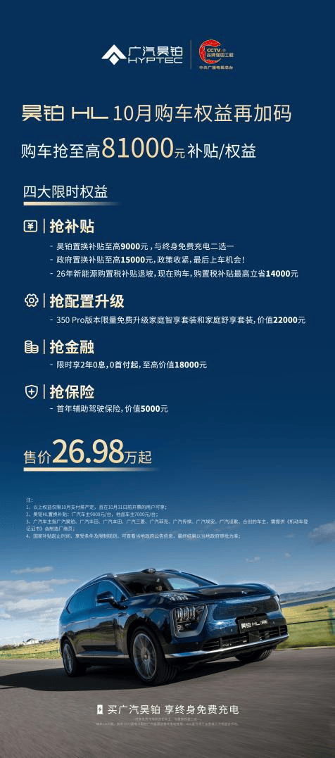 当然,最有吸引力的还是其价格,26.98万-29.98万元的售价,对比同级别大型SUV如问界M7、乐道L90、领克900等产品,昊铂HL增程版的价格结合配置来看诚意十足。与此同时,根据广汽昊铂发布的10月购车政策,官方针对旗下热门车型昊铂HL推出限时权益,涵盖置换补贴、配置升级、金融政策与保险支持,综合补贴及权益价值高达81000元。