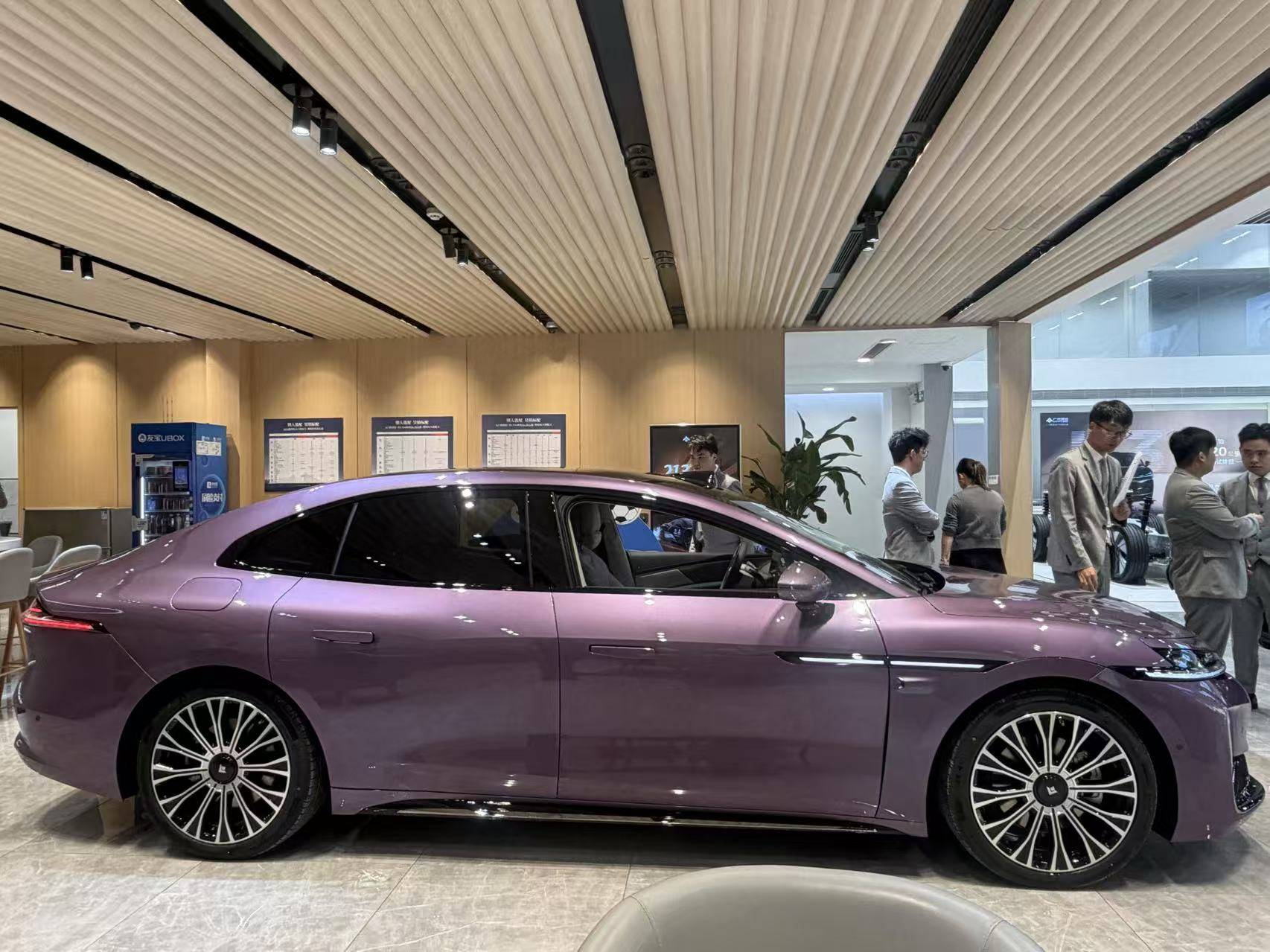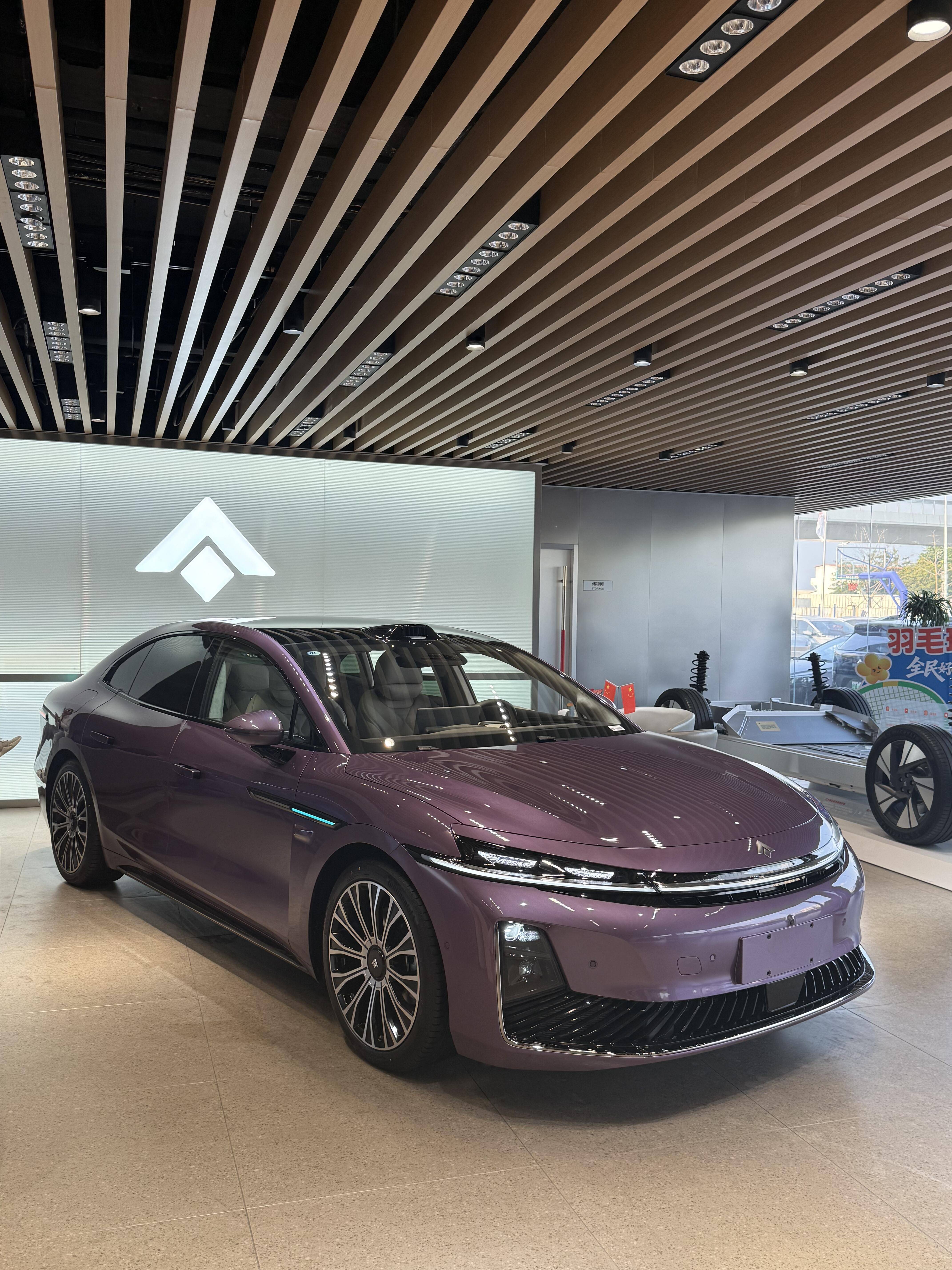 车身尺寸长宽高分别为5130/1966/1500mm,轴距3020mm,大过、奥迪A6L等,与享界S9相差不大。车身侧面采用饱满且优雅的溜背式造型,再配合紫色涂装以及20英寸多幅式/“大饼”风格轮毂,显得很有豪华气息。而前车门处的导风槽,配合上翘的“小鸭尾”,又营造出运动感。诸如无框车门、隐藏式门把手、无边框外后视镜、贯穿式尾灯的加持,则又带来了时尚前卫属性。